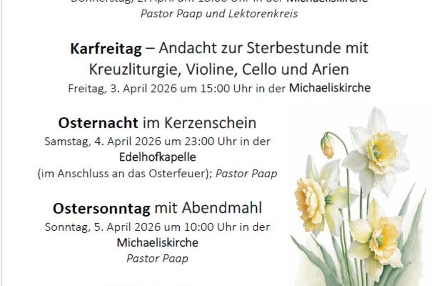 Musikalische Gestaltung der Andacht zur Sterbestunde Jesu Christi am 03. April 2026 (Karfreitag) um 15 Uhr in der Michaeliskirche, Hannover